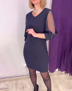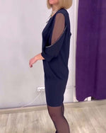Half-sleeved V-neck Rhinestone Stitching Dress