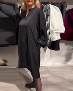 SPECIFICATIONS Style: Elegant Material: Cotton Blends Dress Type: Shift dress Dress Length: Knee Length Neckline: Round Neck Pattern Type: Sequin, Solid Color Sleeve Type: Raglan sleeve Sleeve Length: Long Sleeve Fit Type: Regular Season: Spring, Fall, Winter Occasion: Daily, Vacation Package Includes: 1 x Dress   SIZE TABLE Size Bust Lengt...
