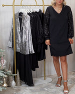 SPECIFICATIONS Style: Chic Material: 95% polyester, 5% spandex Dress Type: Tunic Dress Length: Knee Length Neckline: V neck_V Pattern Type: Sequin, Solid Color Sleeve Type: Regular sleeve Sleeve Length: Long Sleeve Details: Lace Up Fit Type: Regular Season: Fall, Winter Occasion: Daily, Vacation Package Includes: 1 x Dress SIZE TABLE Size...