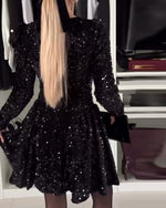 SPECIFICATIONS Style: Chic Material: 95% polyester, 5% spandex Dress Type: Tunic Dress Length: Knee Length Neckline: V neck_V Pattern Type: Sequin, Solid Color Sleeve Type: Regular sleeve Sleeve Length: Long Sleeve Details: Lace Up Fit Type: Regular Season: Fall, Winter Occasion: Daily, Vacation Package Includes: 1 x Dress   SIZE TABLE Size...