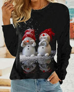 Snowman Print Crew Neck Casual Long Sleeve Top