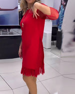 SPECIFICATIONS Style: Casual, Chic Material: 100% Polyester Dress Type: Shift dress Dress Length: Knee Length Neckline: Round Neck Pattern Type: Solid Color Sleeve Type: Regular sleeve Sleeve Length: Short Sleeve Details: Tassel Fit Type: Regular Season: Spring, Summer Occasion: Daily Package Includes: 1 x Dress SIZE TABLE ...