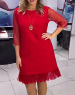 SPECIFICATIONS Style: Elegant Material: Cotton Blends Dress Type: Shift dress Dress Length: Knee Length Neckline: Round Neck Pattern Type: Sequin, Solid Color Sleeve Type: Raglan sleeve Sleeve Length: Long Sleeve Fit Type: Regular Season: Spring, Fall, Winter Occasion: Daily, Vacation Package Includes: 1 x Dress   SIZE TABLE Size Bust Lengt...