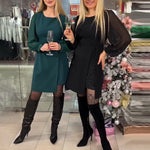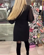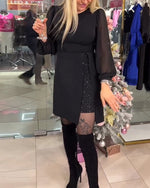 SPECIFICATIONS Style: Elegant Material: Cotton Blends Dress Type: Shift dress Dress Length: Knee Length Neckline: Round Neck Pattern Type: Sequin, Solid Color Sleeve Type: Raglan sleeve Sleeve Length: Long Sleeve Fit Type: Regular Season: Spring, Fall, Winter Occasion: Daily, Vacation Package Includes: 1 x Dress   SIZE TABLE Size Bust Lengt...