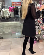 SPECIFICATIONS Style: Elegant Material: Cotton Blends, Mesh Dress Type: A-Line Dress Length: Knee Length Neckline: High Neck Pattern Type: Solid Color Sleeve Type: Lantern Sleeve Sleeve Length: Long Sleeve Details: See-through Fit Type: Loose Season: Fall, Winter Occasion: Daily Package Includes: 1 x Dress SIZE TABLE Size Bust Length ...
