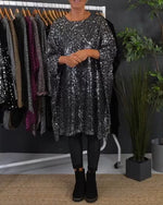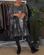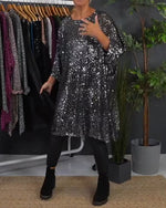 SPECIFICATIONS Style: Elegant Material: Cotton Blends Dress Type: Shift dress Dress Length: Knee Length Neckline: Round Neck Pattern Type: Sequin, Solid Color Sleeve Type: Raglan sleeve Sleeve Length: Long Sleeve Fit Type: Regular Season: Spring, Fall, Winter Occasion: Daily, Vacation Package Includes: 1 x Dress   SIZE TABLE Size Bust Lengt...