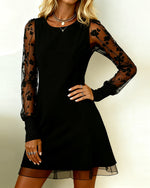 SPECIFICATIONS Style: Casual Material: Cotton Blends,Mesh Dress Type: Shift dress Dress Length: Above-knee Neckline: Round Neck Pattern Type: Solid Color Sleeve Type: Lantern Sleeve Sleeve Length: Long Sleeve Details: Patchwork Fit Type: Regular Season: Spring,Fall Occasion: Daily Package Includes: 1 x Dress SIZE TABLE Size Bust Length ...