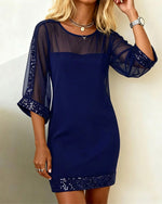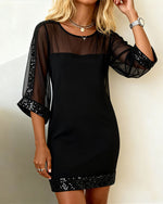 Icon1 Sequin Paneled Mesh Crew Neck Dress