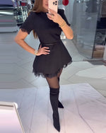 Icon1 Sparkling Lace Short-Sleeve A-Line Dress