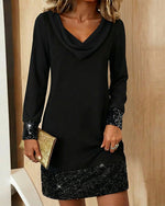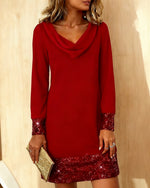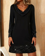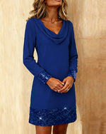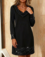 SPECIFICATIONS Style: Casual Material: Cotton Blends Dress Type: Bodycon Dress Length: Above-knee Neckline: Draped Collar Pattern Type: Sequin,Solid Color Sleeve Type: Regular sleeve Sleeve Length: Long Sleeve Fit Type: Regular Season: Fall,Winter Occasion: Vacation Package Includes: 1 x Dress SIZE TABLE Size Bust Length CM INCH CM INCH...