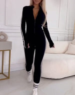 Solid Color Long Sleeve Casual Jumpsuit