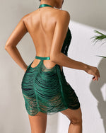 NEW Icon1 Halter-Neck Tassel See-Through Dress