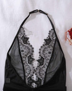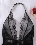 Floral Lace Halter Babydoll Lingerie Dress With Thong