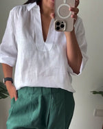 Solid Color V-Neck Loose Casual Top