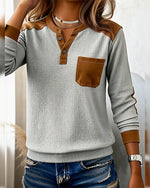 SPECIFICATIONS Top Type: Tops Style: Casual Material: Cotton Blends Occasion: Daily Neckline: Round Neck Pattern Type: Solid Color Sleeve Type: Regular sleeve Sleeve Length: Long Sleeve Fit Type: Regular Season: Spring,Fall,Winter Details: Patchwork Package Includes: 1 x Top SIZE TABLE Size Bust Length CM INCH CM INCH S 97 38.19 ...