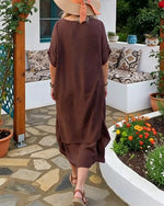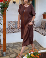SPECIFICATIONS Style: Casual Material: Cotton Blends Dress Type: Shift dress Dress Length: Maxi Neckline: V neck_V Pattern Type: Geometric Print Sleeve Type: Regular sleeve Sleeve Length: Short Sleeve Fit Type: Regular Season: Spring,Summer Occasion: Daily Package Includes: 1 x Dress SIZE TABLE Size Bust Length CM INCH CM INCH S 97 38...