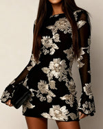 V-Neck Ruffle Sleeve Velvet Sequin Dress