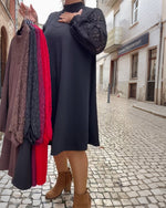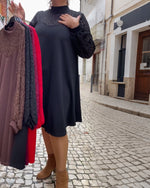 SPECIFICATIONS Style: Casual Material: Cotton Blends Dress Type: Shift dress Dress Length: Midi Neckline: Round Neck Pattern Type: Sequin Sleeve Type: Regular sleeve Sleeve Length: Long Sleeve Details: Patchwork Fit Type: Loose Season: Fall Occasion: Daily Package Includes: 1 x Dress SIZE TABLE Size  Bust  Length CM INCH CM INCH S...
