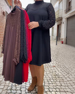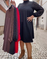 SPECIFICATIONS Style: Casual Material: Cotton Blends Dress Type: A-Line Dress Length: Knee Length Neckline: Round Neck Pattern Type: Solid Color Sleeve Type: Regular sleeve Sleeve Length: Long Sleeve Details: Shirred,Lace Fit Type: Loose Season: Fall,Winter Occasion: Daily Package Includes: 1 x Dress SIZE TABLE Size Bust Length CM ...