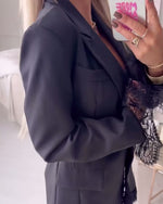 Color-Blocked Stylish Lapel Dress