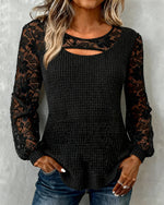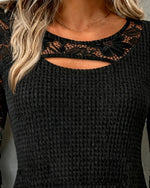 SPECIFICATIONS Top Type: Tops Style: Sexy Material: Cotton Blends Occasion: Daily,Vacation,Party Neckline: V neck_V Sleeve Type: Regular sleeve Sleeve Length: Long Sleeve Fit Type: Regular Season: Fall,Winter Details: Patchwork,Lace Package Includes: 1 x Top SIZE TABLE Size Bust Length CM INCH CM INCH S 92 36.22 65 25.59 M 96 37.8 6...