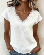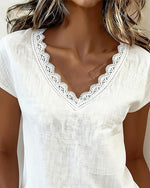 SPECIFICATIONS Top Type: T-shirt Style: Casual Material: Cotton Blends,Lace Occasion: Daily Neckline: Cold Shoulder Pattern Type: Solid Color Sleeve Type: Regular sleeve Sleeve Length: Short Sleeve Fit Type: Regular Season: Spring,Summer Details: Lace Package Includes: 1 x T-shirt SIZE TABLE Size Bust Length CM INCH CM INCH S 97 ...