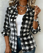 SPECIFICATIONS Top Type: Tops Style: Casual Material: Cotton Blends Occasion: Daily Pattern Type: Plaid Sleeve Type: Regular sleeve Sleeve Length: Long Sleeve Fit Type: Regular Season: Fall,Winter Details: Irregular,Fake two pieces Package Includes: 1 x Top SIZE TABLE Size Bust Length CM INCH CM INCH S 97 38.19 68 26.77 M 101 3...