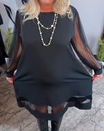 SPECIFICATIONS Top Type: Tops Style: Chic Material: Cotton Blends,Mesh Occasion: Daily Neckline: Round Neck Pattern Type: Solid Color Sleeve Type: Flare Sleeve Sleeve Length: Nine Points Sleeve Fit Type: Regular Season: Fall,Winter Details: Patchwork Package Includes: 1 x Top SIZE TABLE Size Bust Length CM INCH CM INCH S 97 38.1...