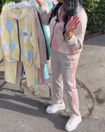 Diamond-Patterned Top And Trousers Two-Piece Set