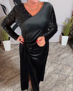 V-Neck Ruffle Sleeve Velvet Sequin Dress