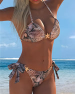 Sexy Tie-Up Two-Piece Printed Swimsuit
