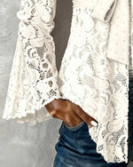 SPECIFICATIONS Top Type: Blouses Style: Casual Material: Cotton Blends Occasion: Daily Neckline: V neck_V Pattern Type: Solid Color Sleeve Type: Ruffle Sleeve Sleeve Length: 3/4 Sleeve Fit Type: Regular Season: Fall,Winter Details: Lace Package Includes: 1 x Blouse SIZE TABLE Size Bust Length CM INCH CM INCH S 97 38.19 65 25.59 ...