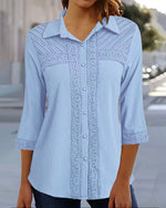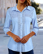 SPECIFICATIONS Top Type: Blouses Style: Casual Material: Cotton Blends Occasion: Daily Neckline: Round Neck Pattern Type: Solid Color Sleeve Type: Regular sleeve Sleeve Length: 3/4 Sleeve Fit Type: Regular Season: Fall,Winter Details: See-through Package Includes: 1 x Blouses SIZE TABLE Size Bust Length CM INCH CM INCH S 97 ...