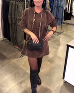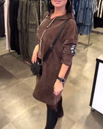 SPECIFICATIONS Style: Casual Material: Cotton Blends Dress Type: A-Line Dress Length: Above-knee Pattern Type: Solid Color Sleeve Type: Regular sleeve Sleeve Length: Long Sleeve Fit Type: Regular Season: Fall,Winter Occasion: Daily Package Includes: 1 x Dress SIZE TABLE Size Bust Length CM INCH CM INCH S 97 38.19 95 37.40 M 101 39.7...
