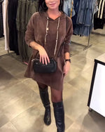 SPECIFICATIONS Style: Casual Material: Velvet Dress Type: Shift dress Dress Length: Knee Length Neckline: High Neck Pattern Type: Solid Color Sleeve Type: Regular sleeve Sleeve Length: Long Sleeve Details: Pocket Fit Type: Regular Season: Fall,Winter Occasion: Daily SIZE TABLE Size Bust Length CM INCH CM INCH S 97 38.19 100 39.37...