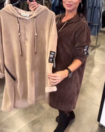 SPECIFICATIONS Style: Chic Material: Corduroy Dress Type: A-Line Dress Length: Above-knee Neckline: Round Neck Sleeve Type: Regular sleeve Sleeve Length: Long Sleeve Details: Shirred Fit Type: Regular Season: Fall,Winter Occasion: Daily Package Includes: 1 x Dress SIZE TABLE Size Bust Length CM INCH CM INCH S 97 38.19 86 33.86 M...
