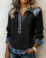 Button-Down Collar Stylish Color-Blocked Sweatshirt