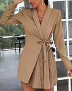 SPECIFICATIONS Style: Business Material: Cotton Blends Dress Type: Shift dress Dress Length: Midi Neckline: V neck_V Pattern Type: Solid Color Sleeve Type: Regular sleeve Sleeve Length: Long Sleeve Details: Slit Fit Type: Regular Season: Fall,Winter Occasion: Daily,Work Package Includes: 1 x Dress SIZE TABLE Size Bust Length CM INC...