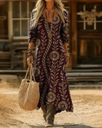 SPECIFICATIONS Style: Casual Material: Cotton Blends Dress Type: Shift dress Dress Length: Maxi Neckline: V neck_V Pattern Type: Print Sleeve Type: Lantern Sleeve Sleeve Length: Long Sleeve Fit Type: Loose Season: Fall,Winter Occasion: Daily Package Includes: 1 x Dress SIZE TABLE Size Bust Length CM INCH CM INCH S 97 38.19 130 51.18 ...