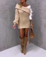 SPECIFICATIONS Category: Sweater Dresses Style: Casual, Business Material: 50% Viscose, 28% PBT, 22% Nylon Neckline: Round Neck Pattern Type: Solid color Sleeve Type: Dropped shoulder Dress Type: Straight Dress Length: Knee Length Sleeve Length: Long Sleeve Details: Ribbed, Patchwork Fit Type: Loose Occasion: Daily, Work Season: Spring, Fall,...
