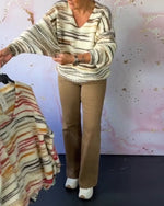 Striped Collar Split Sweater