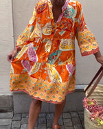 SPECIFICATIONS Style: Casual Material: 5% Spandex, 95% Polyester Dress Type: A-Line Dress Length: Knee Length Neckline: V neck_V Pattern Type: Print Sleeve Type: Flare Sleeve Sleeve Length: 3/4 Sleeve Fit Type: Regular Season: Spring, Summer Occasion: Daily Package Includes: 1 x Dress SIZE TABLE Size Bust Length Sleeve le...