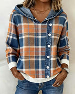 Casual Denim Plaid Patchwork Hooded