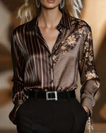 Casual Plaid Stripe Print Long Sleeve Blouse