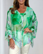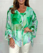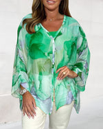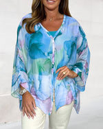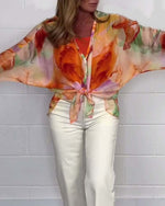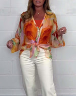 Casual printed V-neck long sleeve blouse