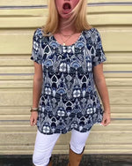 Casual Retro Crew Neck Printed T-Shirt