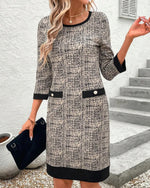 SPECIFICATIONS Style: Elegant Material: 5% Spandex, 95% Polyester Dress Type: A-Line Dress Length: Knee Length Neckline: Round Neck Pattern Type: Print Sleeve Type: Regular sleeve Sleeve Length: Long Sleeve Details: Pocket Fit Type: Regular Season: Fall, Winter Occasion: Daily, Vacation Package Includes: 1 x Dress SIZE TABLE S...