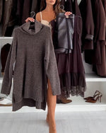 Irregular hem solid color sweater dress
