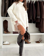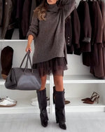 Casual Turtleneck Pullover Lace Two-Piece Set