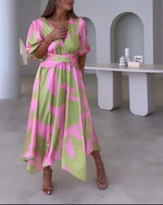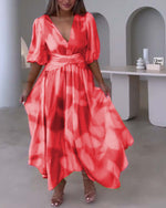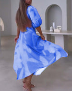 SPECIFICATIONS Style: Casual, Vacation Dress Type: A-Line Dress Length: Maxi Neckline: V neck_V Pattern Type: Print Sleeve Type: Lantern Sleeve Details: Drawstring Fit Type: Regular Material: 95% polyester, 5% spandex Season: Spring, Summer, Fall Occasion: Daily, Vacation Package Includes: 1 x Dress SIZE TABLE (cm) Size Bust Length Sho...